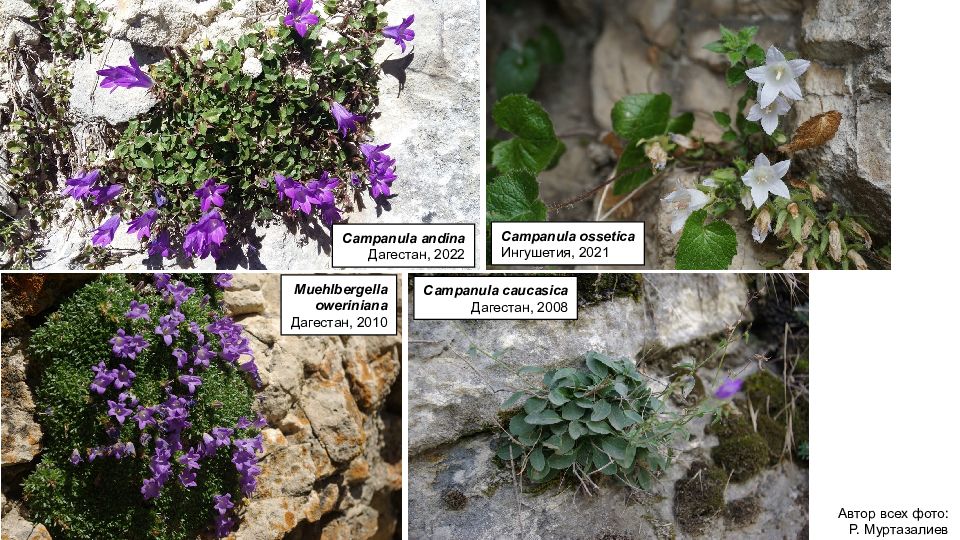 Campanula andina Дагестан, 2022 Campanula ossetica Ингушетия, 2021 Muehlbergella oweriniana Дагестан, 20 10 Campanula caucasica Дагестан, 20 08 Автор всех фото: Р. Муртазалиев
