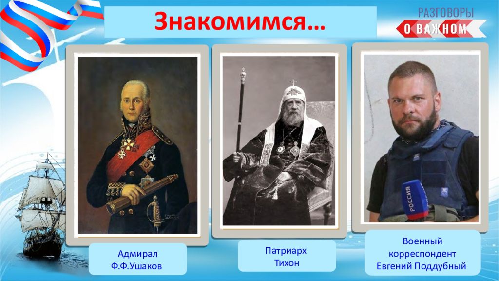 Адмирал Ф.Ф.Ушаков Патриарх Тихон Военный корреспондент Евгений Поддубный