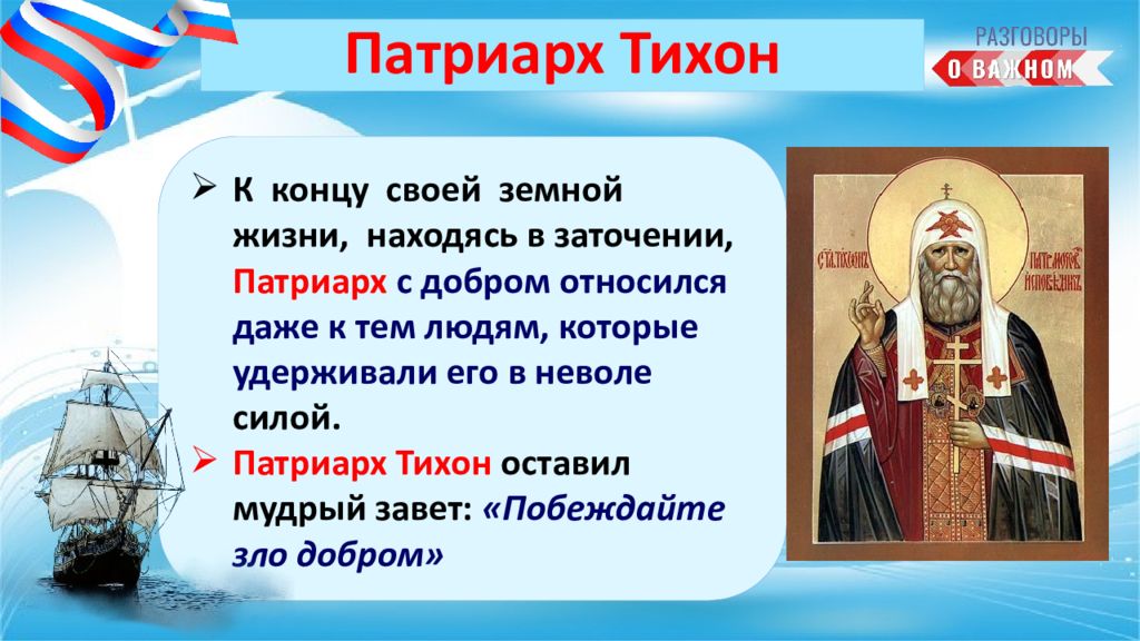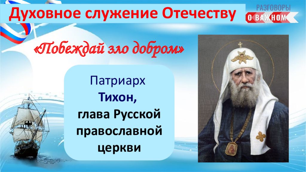 Патриарх Тихон, глава Русской православной церкви Духовное служение Отечеству «Побеждай зло добром»