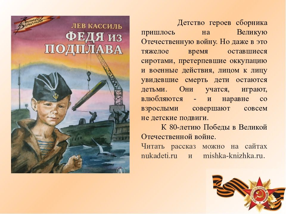 Детство героев сборника пришлось на Великую Отечественную войну. Но даже в это тяжелое время оставшиеся сиротами, претерпевшие оккупацию и военные действия, лицом к лицу увидевшие смерть дети остаются детьми. Они учатся, играют, влюбляются - и наравне со взрослыми совершают совсем не детские подвиги. К 80-летию Победы в Великой Отечественной войне. Читать рассказ можно на сайтах nukadeti.ru и mishka-knizhka.ru.