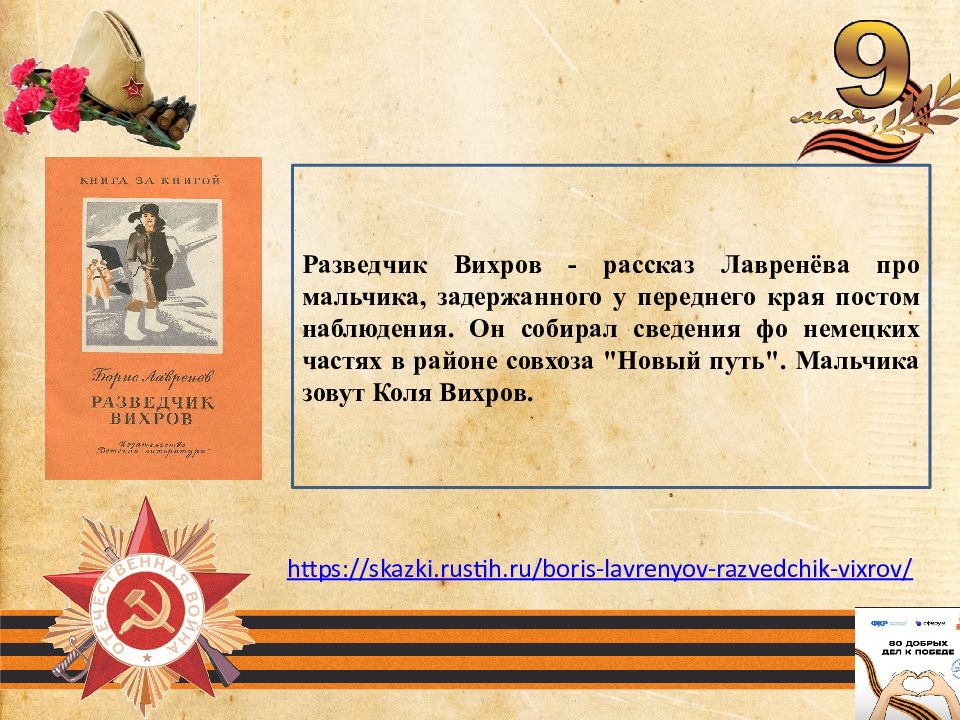 Слайд 9: https://skazki.rustih.ru/boris-lavrenyov-razvedchik-vixrov/