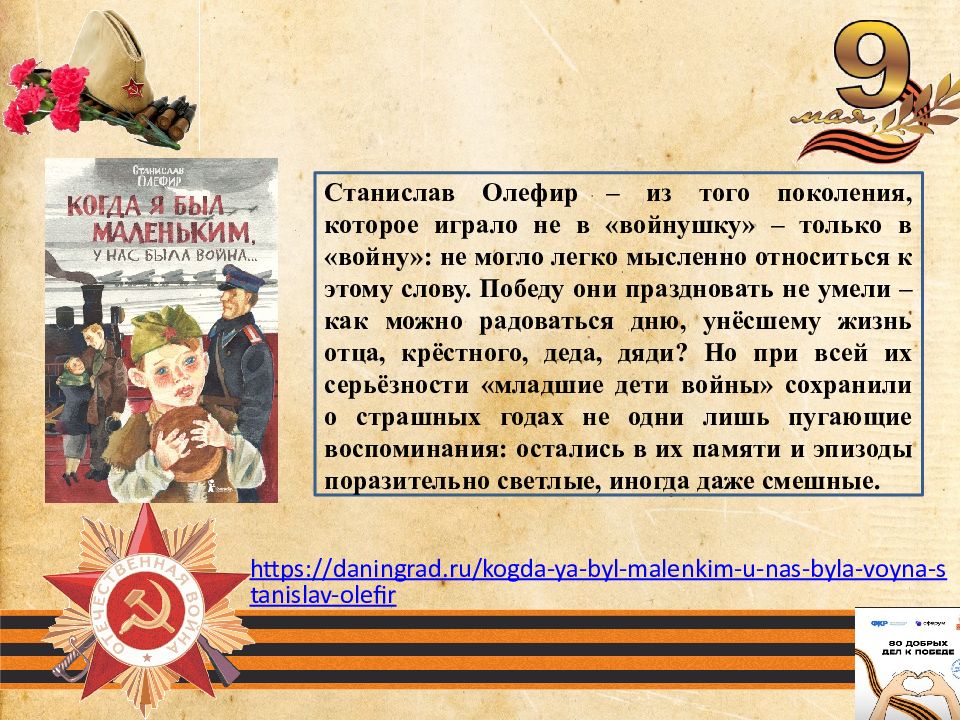 Слайд 8: https://daningrad.ru/kogda-ya-byl-malenkim-u-nas-byla-voyna-stanislav-olefir