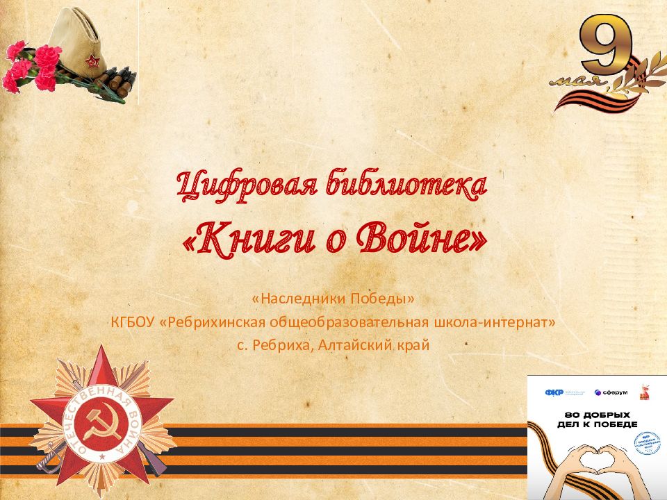 Первый слайд презентации: Цифровая библиотека « Книги о Войне»