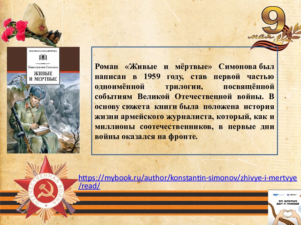 Слайд 13: https://mybook.ru/author/konstantin-simonov/zhivye-i-mertvye/read/