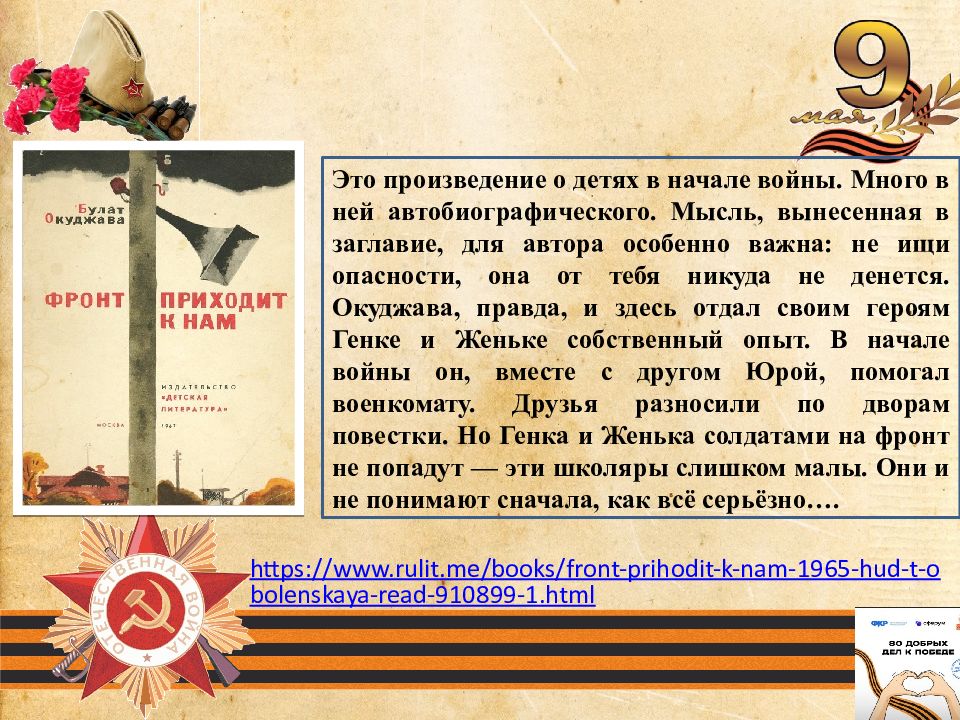 Слайд 6: https://www.rulit.me/books/front-prihodit-k-nam-1965-hud-t-obolenskaya-read-910899-1.html