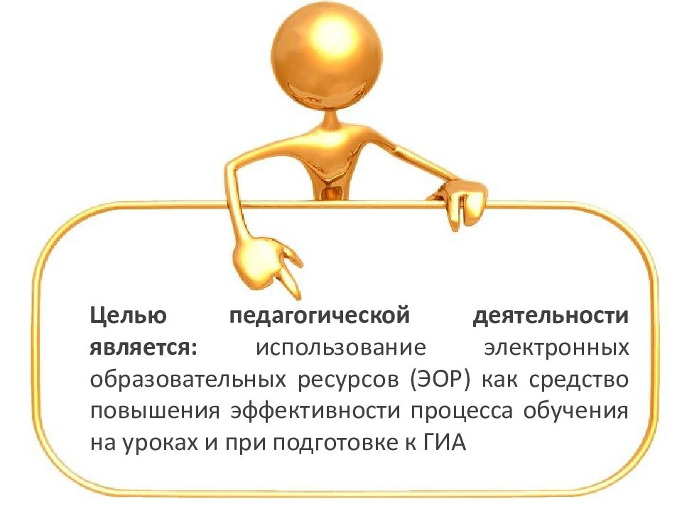 Целью педагогической деятельности является: использование электронных образовательных ресурсов (ЭОР) как средство повышения эффективности процесса обучения на уроках и при подготовке к ГИА