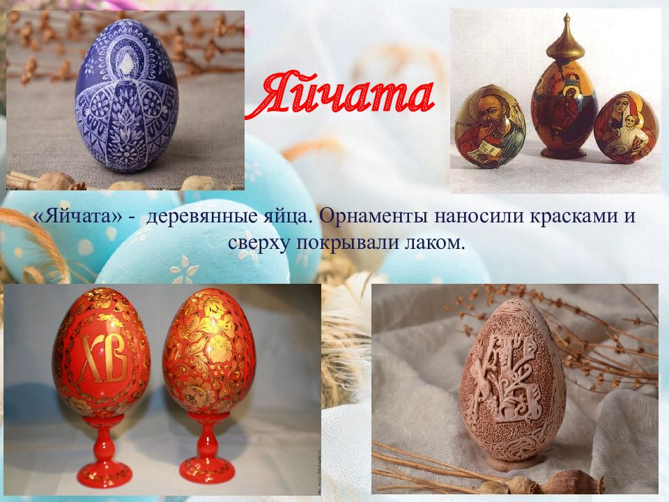« Яйчата » - деревянные яйца. Орнаменты наносили красками и сверху покрывали лаком.