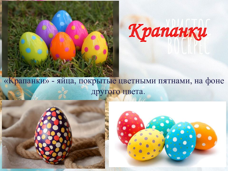 « Крапанки » - яйца, покрытые цветными пятнами, на фоне другого цвета. Крапанки