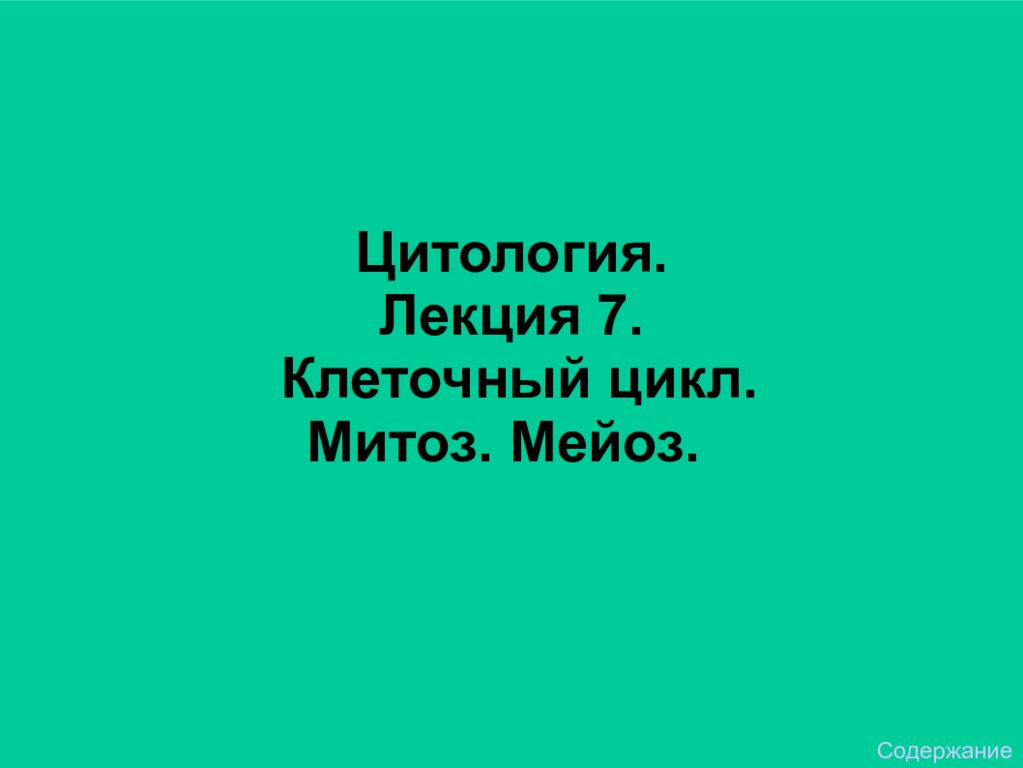 Цитология. Лекция 7. Клеточный цикл. Митоз. Мейоз. Содержание
