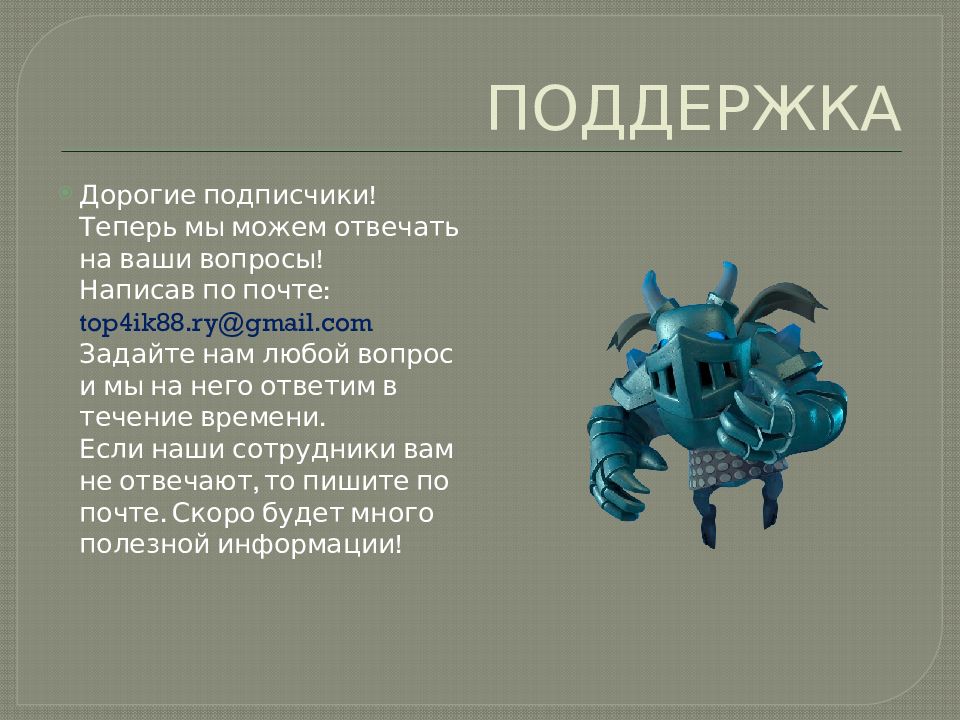 Дорогие подписчики! Теперь мы можем отвечать на ваши вопросы! Написав по почте: top4ik88.ry@gmail.com Задайте нам любой вопрос и мы на него ответим в течение времени. Если наши сотрудники вам не отвечают, то пишите по почте. Скоро будет много полезной информации!