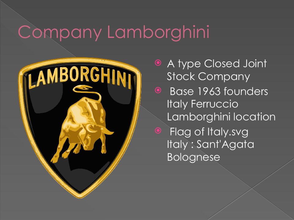 A type Closed Joint Stock Company Base 1963 founders Italy Ferruccio Lamborghini location Flag of Italy.svg Italy : Sant'Agata Bolognese