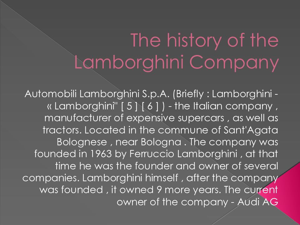 Слайд 2: The history of the Lamborghini Company