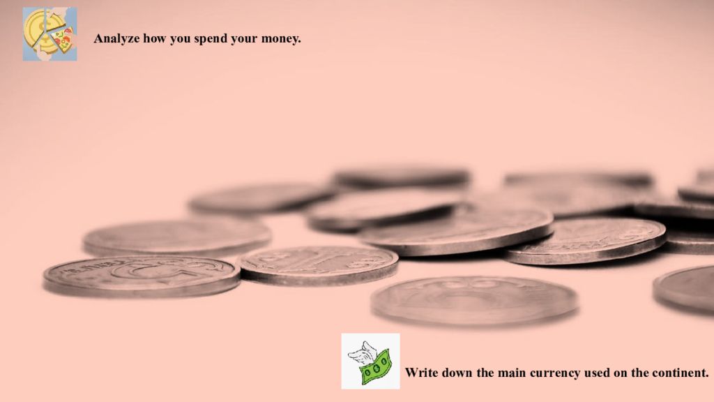 Analyze how you spend your money. Write down the main currency used on the continent.