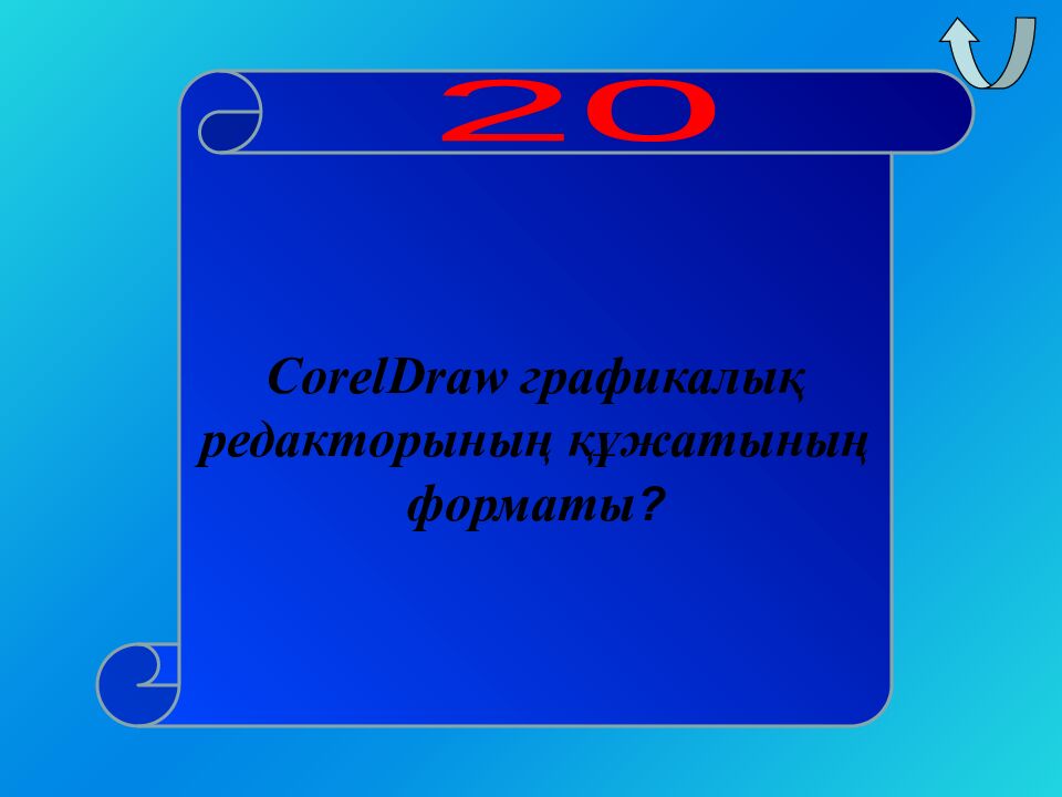 Жауабы: Рисунок1. CDR CorelDraw графикалық редакторының құжатының форматы ? 20