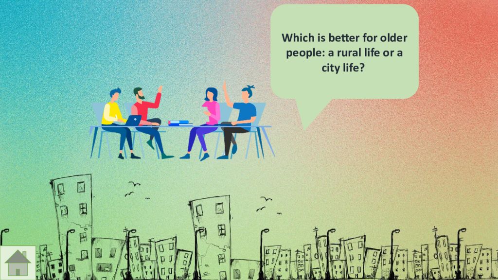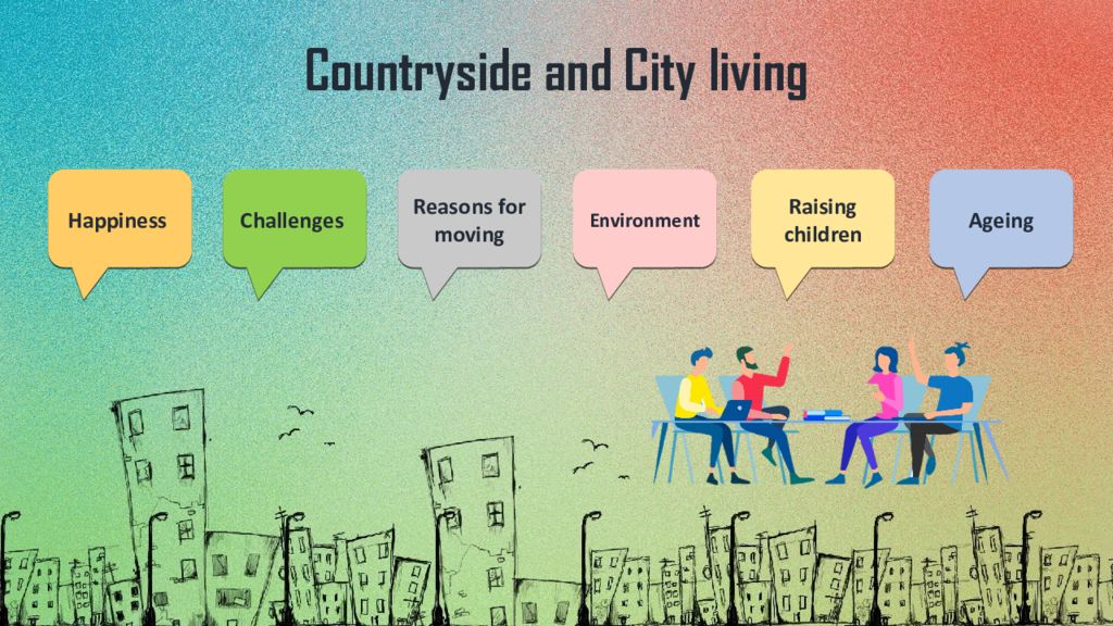 Countryside and City living Happiness Challenges Reasons for moving Environment Raising children A geing