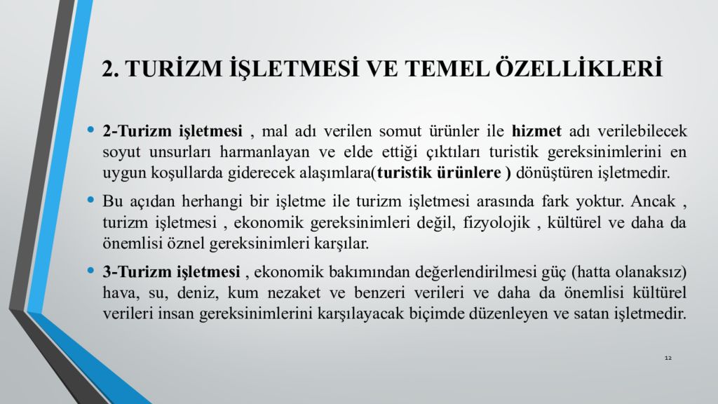 Слайд 12: 2. TURİZM İŞLETMESİ VE TEMEL ÖZELLİKLERİ