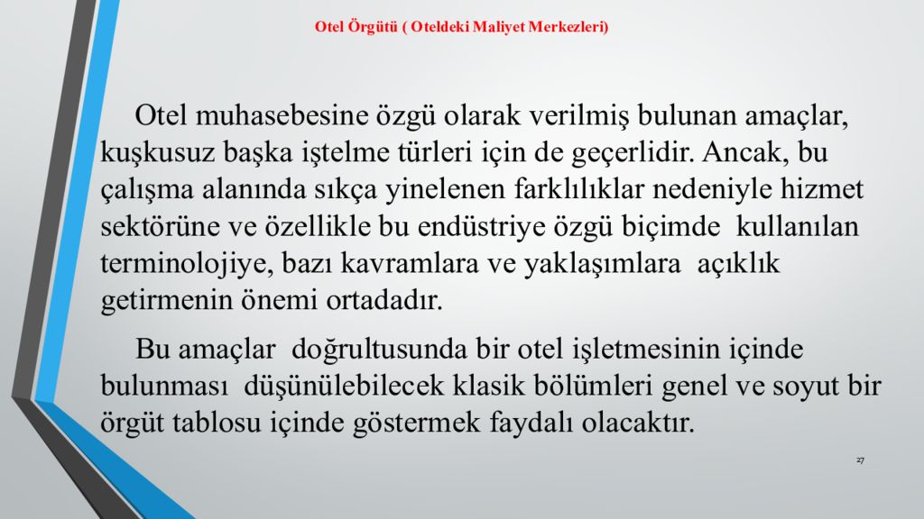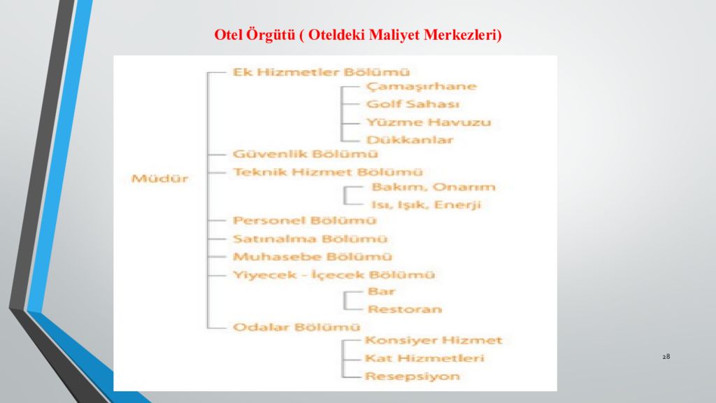 Слайд 27: Otel Örgütü ( Oteldeki Maliyet Merkezleri )