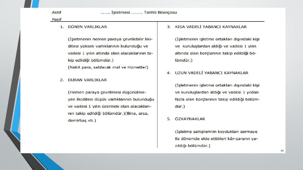Otel işletmelerinde de diğer tüm işletmelerde olduğu gibi aynı mali tablolar düzenlenir. Bunlardan biri de bilançodur. Bilanço ile o işletmenin mali yapısı hakkında birçok bilgiye ulaşabiliriz. Otel muhasebesinin özelliklerini daha rahat anlayabilmemiz için öncelikli olarak bilançonun nasıl bir yapıya sahip olduğu hakkında bilgiye sahip olmamız daha doğru olur. 19