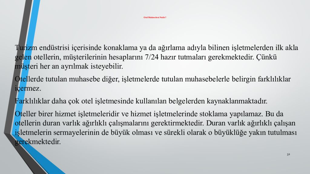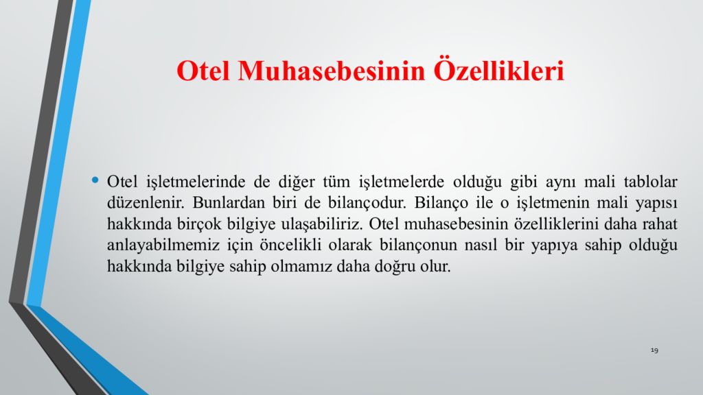 Слайд 19: Otel Muhasebesinin Özellikleri