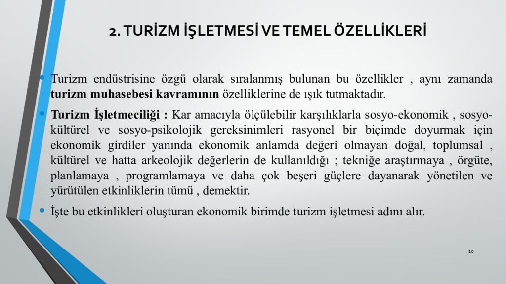 Слайд 10: 2. TURİZM İŞLETMESİ VE TEMEL ÖZELLİKLERİ