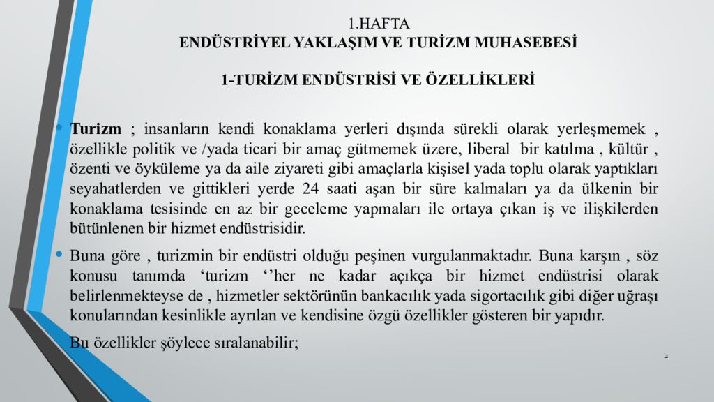 Слайд 2: 1.HAFTA ENDÜSTRİYEL YAKLAŞIM VE TURİZM MUHASEBESİ 1-TURİZM ENDÜSTRİSİ VE ÖZELLİKLERİ