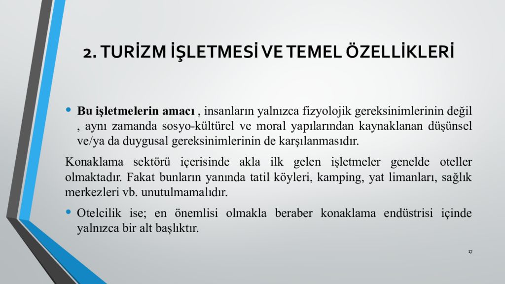Слайд 17: 2. TURİZM İŞLETMESİ VE TEMEL ÖZELLİKLERİ