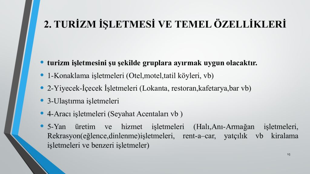 Слайд 15: 2. TURİZM İŞLETMESİ VE TEMEL ÖZELLİKLERİ