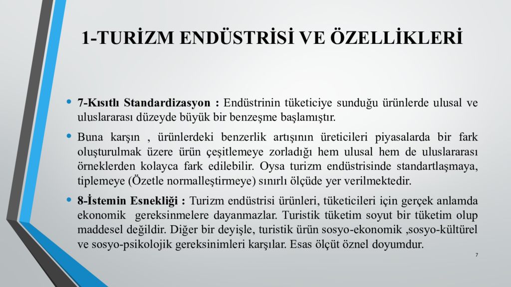 Слайд 7: 1-TURİZM ENDÜSTRİSİ VE ÖZELLİKLERİ