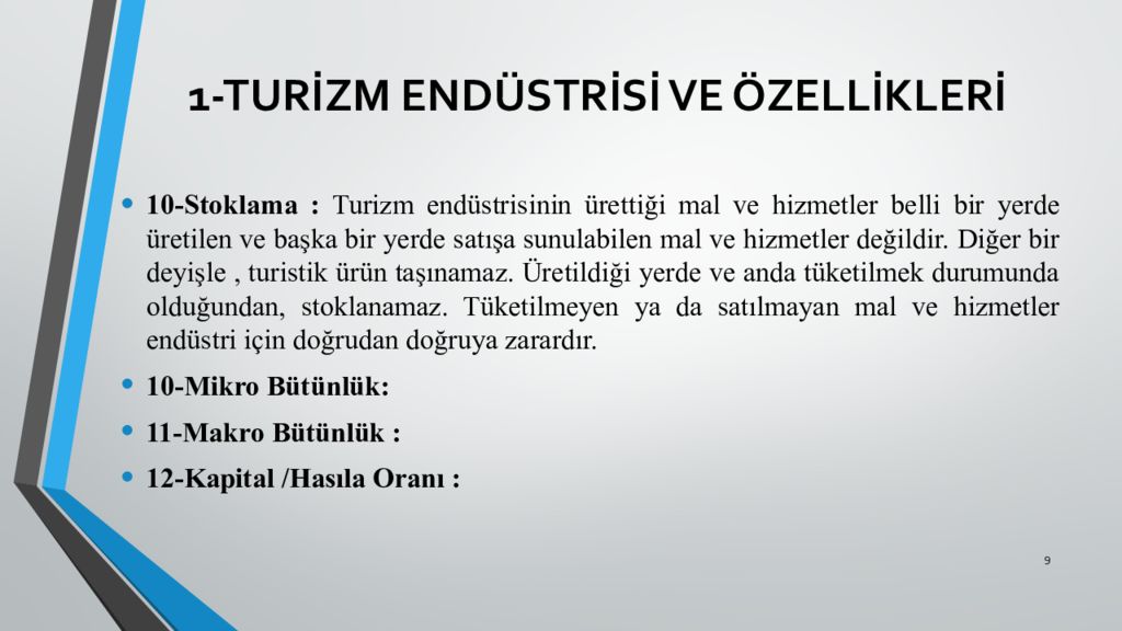 Слайд 9: 1-TURİZM ENDÜSTRİSİ VE ÖZELLİKLERİ