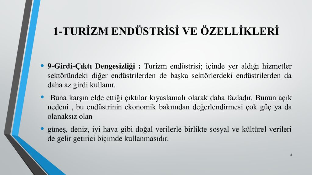 Слайд 8: 1-TURİZM ENDÜSTRİSİ VE ÖZELLİKLERİ