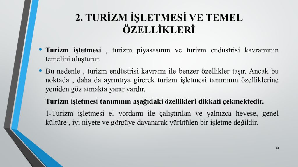 Слайд 11: 2. TURİZM İŞLETMESİ VE TEMEL ÖZELLİKLERİ