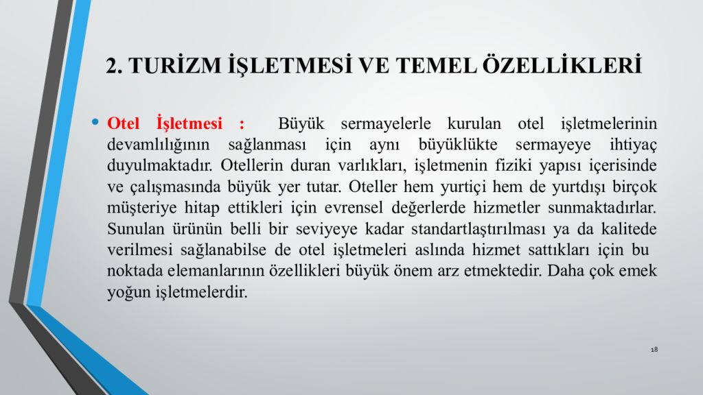Слайд 18: 2. TURİZM İŞLETMESİ VE TEMEL ÖZELLİKLERİ