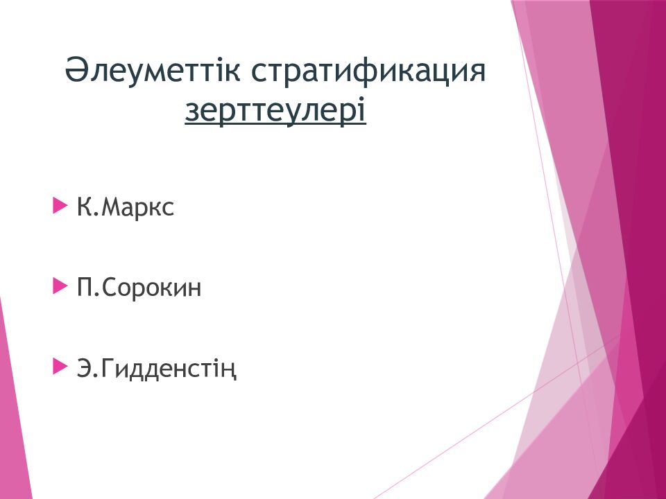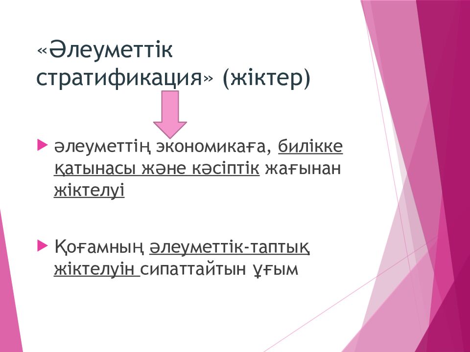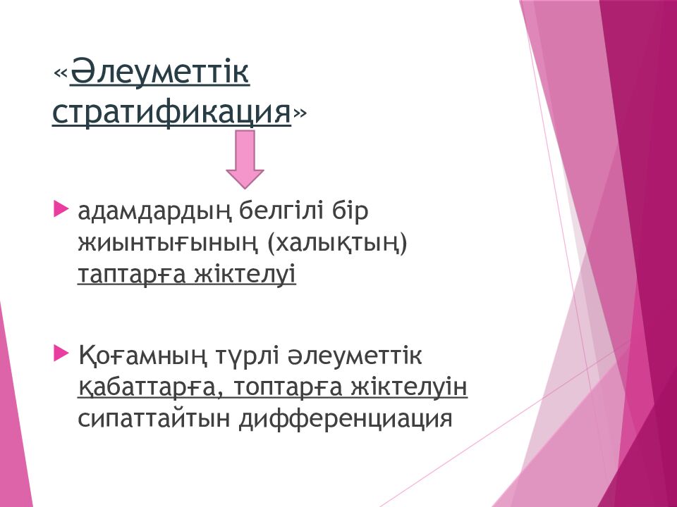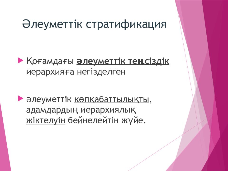 Слайд 9: Әлеуметтік стратификация» (жіктер)