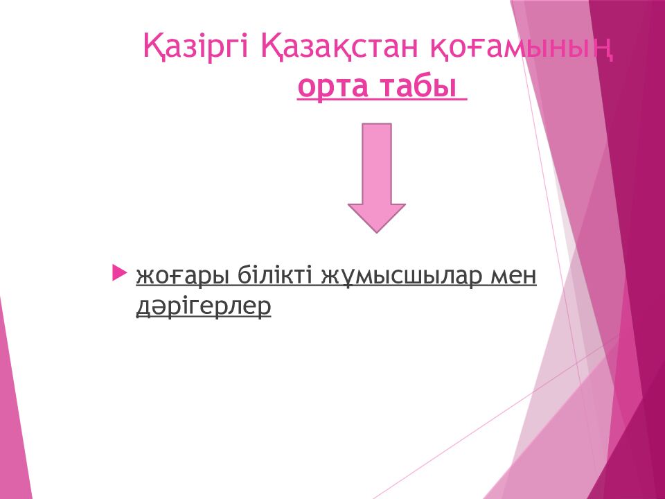 Слайд 43: Қазіргі Қазақстан қоғамының орта табы