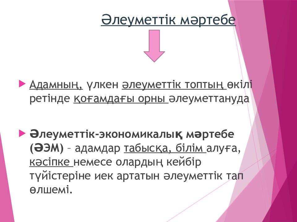 әлеуметтің экономикаға, билікке қатынасы және кәсіптік жағынан жіктелуі Қоғамның әлеуметтік-таптық жіктелуін сипаттайтын ұғым