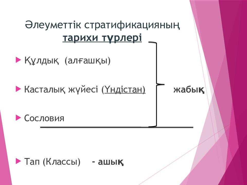 Слайд 30: Әлеуметтік стратификацияның тарихи түрлері