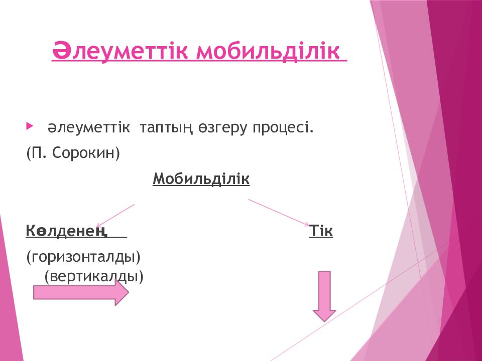 әлеуметтік таптың өзгеру процесі. (П. Сорокин) Мобильділік Көлденең Тік ( горизонталды ) ( вертикалды )