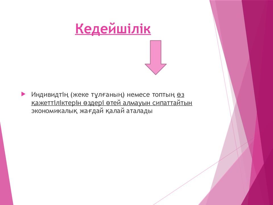 Индивидтің (жеке тұлғаның) немесе топтың өз қажеттіліктерін өздері өтей алмауын сипаттайтын экономикалық жағдай қалай аталады