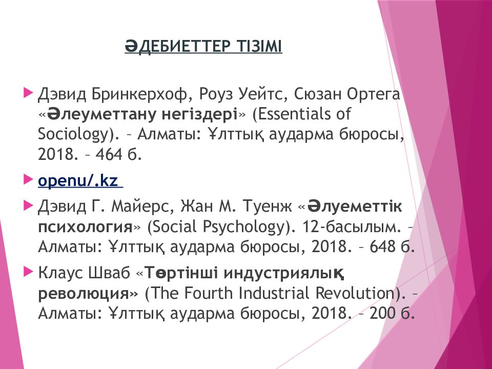 Последний слайд презентации: Дәріс - 4 Әлеуметтік құрылым және қоғамның стратификациясы: ӘДЕБИЕТТЕР ТІЗІМІ