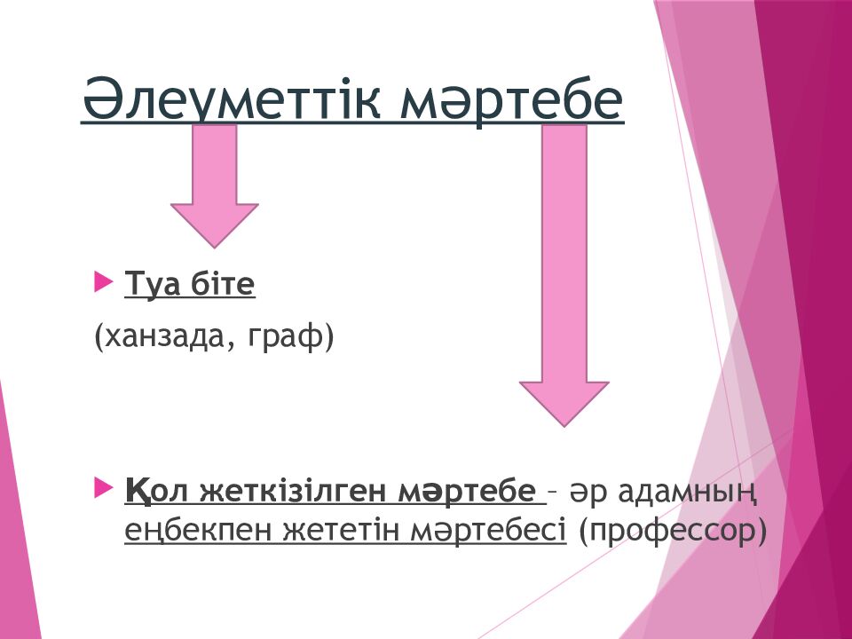 Туа біте ( ханзада, граф) Қол жеткізілген мәртебе – әр адамның еңбекпен жететін мәртебесі (профессор)