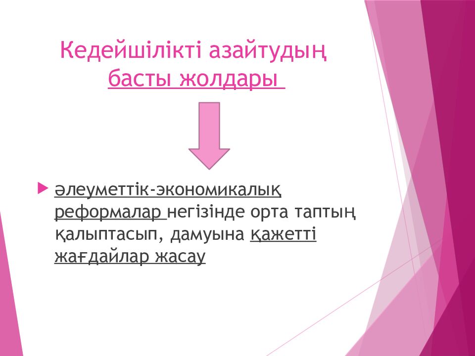 Слайд 47: Кедейшілікті азайтудың басты жолдары