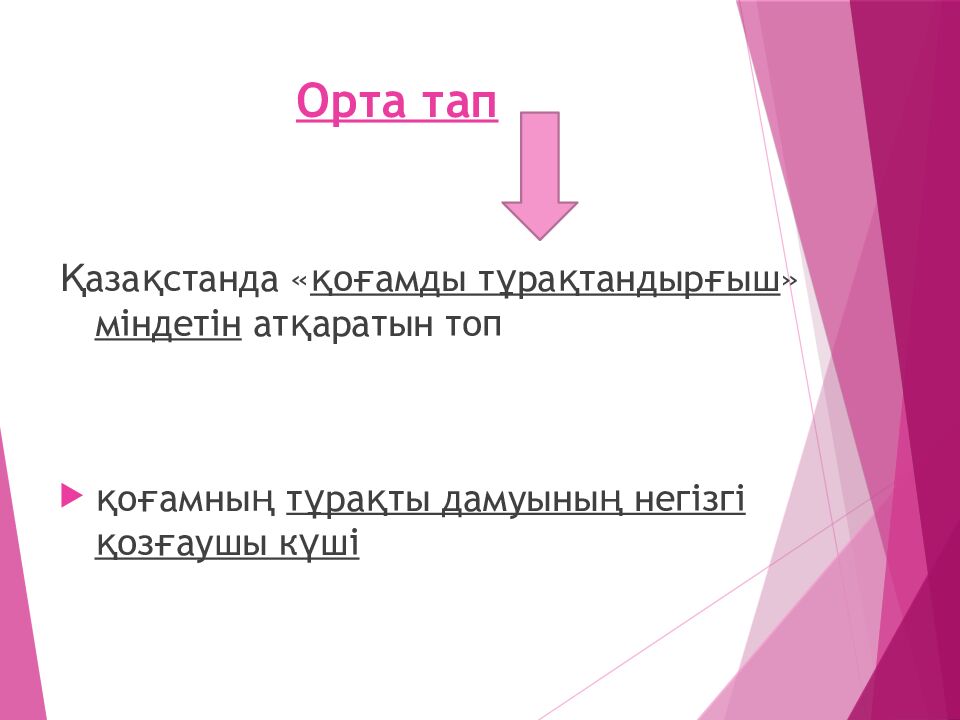 Қазақстанда « қоғамды тұрақтандырғыш » міндетін атқаратын топ қоғамның тұрақты дамуының негізгі қозғаушы күші
