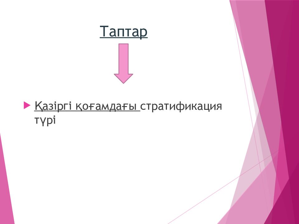 адамдардың белгілі бір жиынтығының (халықтың) таптарға жіктелуі Қоғамның түрлі әлеуметтік қабаттарға, топтарға жіктелуін сипаттайтын дифференциация