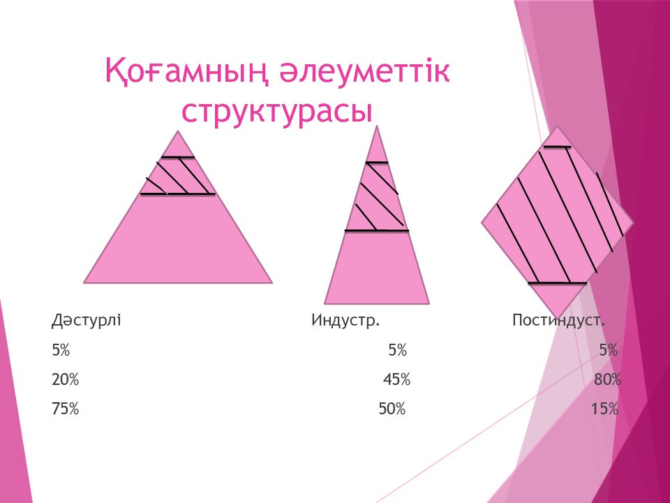 Дәстурлі Индустр. Постиндуст. 5% 5% 5% 20% 45% 80% 75% 50% 15%