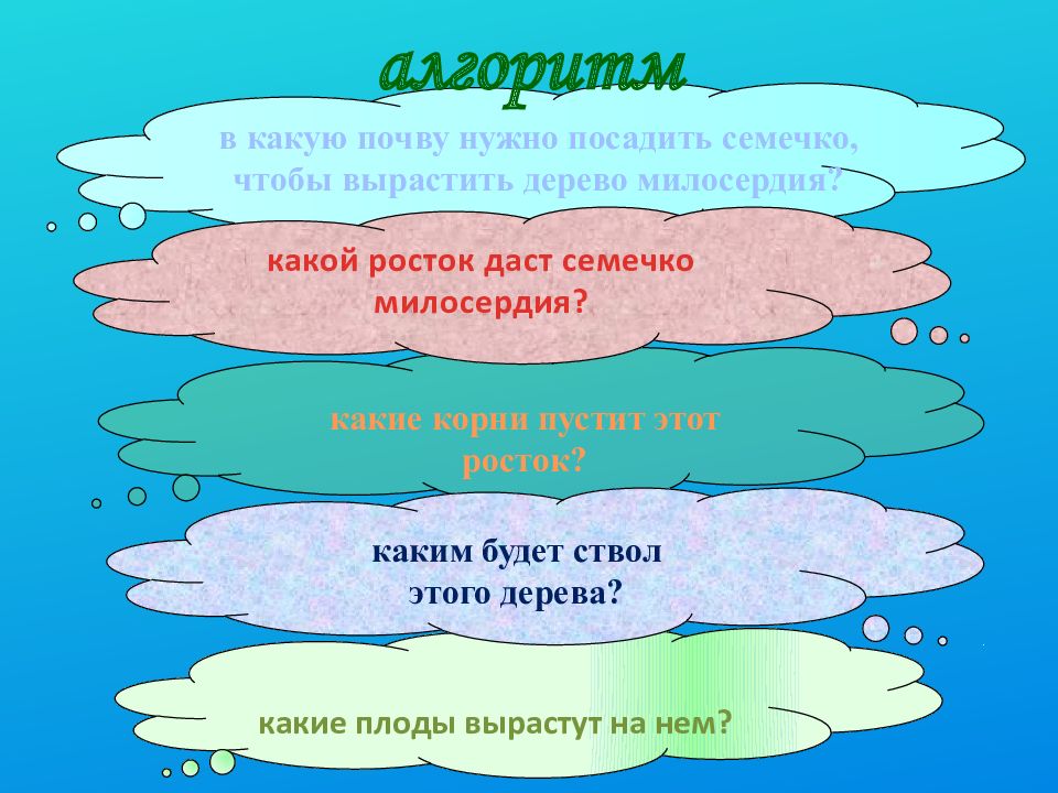 какие плоды вырастут на нем? алгоритм какой росток даст семечко милосердия? в какую почву нужно посадить семечко, чтобы вырастить дерево милосердия? какие корни пустит этот росток? каким будет ствол этого дерева?