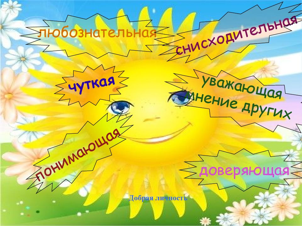 чуткая уважающая мнение других понимающая снисходительная доверяющая Добрая личность любознательная