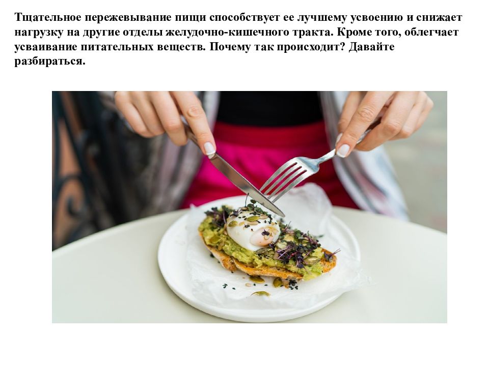 Тщательное пережевывание пищи способствует ее лучшему усвоению и снижает нагрузку на другие отделы желудочно-кишечного тракта. Кроме того, облегчает усваивание питательных веществ. Почему так происходит? Давайте разбираться.