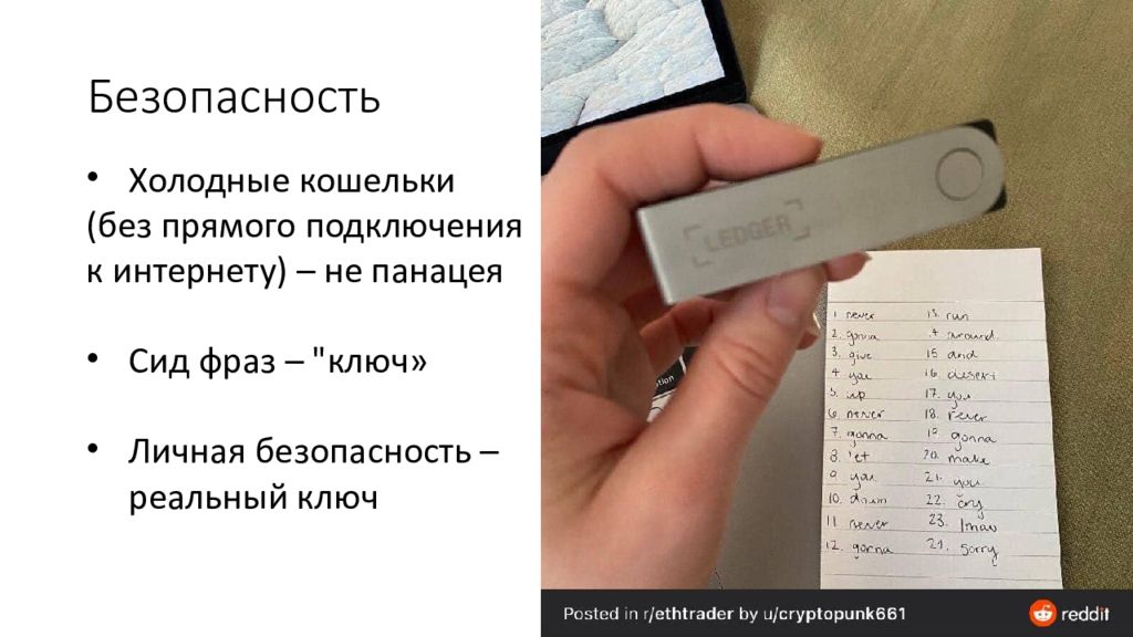 Холодные кошельки (без прямого подключения к интернету) – не панацея Сид фраз – "ключ» Личная безопасность – реальный ключ