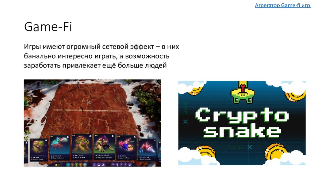 Игры имеют огромный сетевой эффект – в них банально интересно играть, а возможность заработать привлекает ещё больше людей Агрегатор Game-fi игр