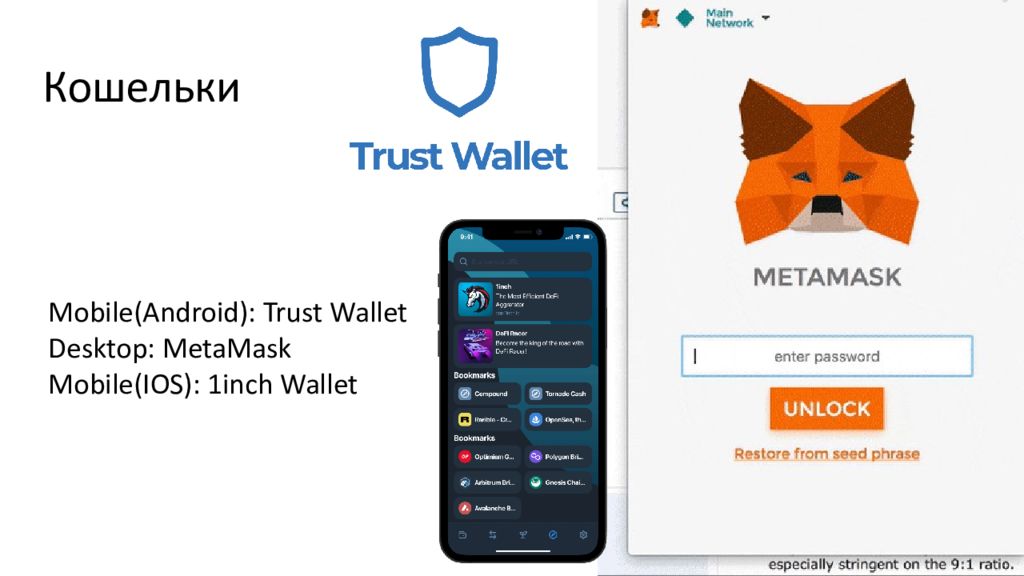 Mobile(Android): Trust Wallet Desktop: MetaMask Mobile(IOS): 1inch Wallet